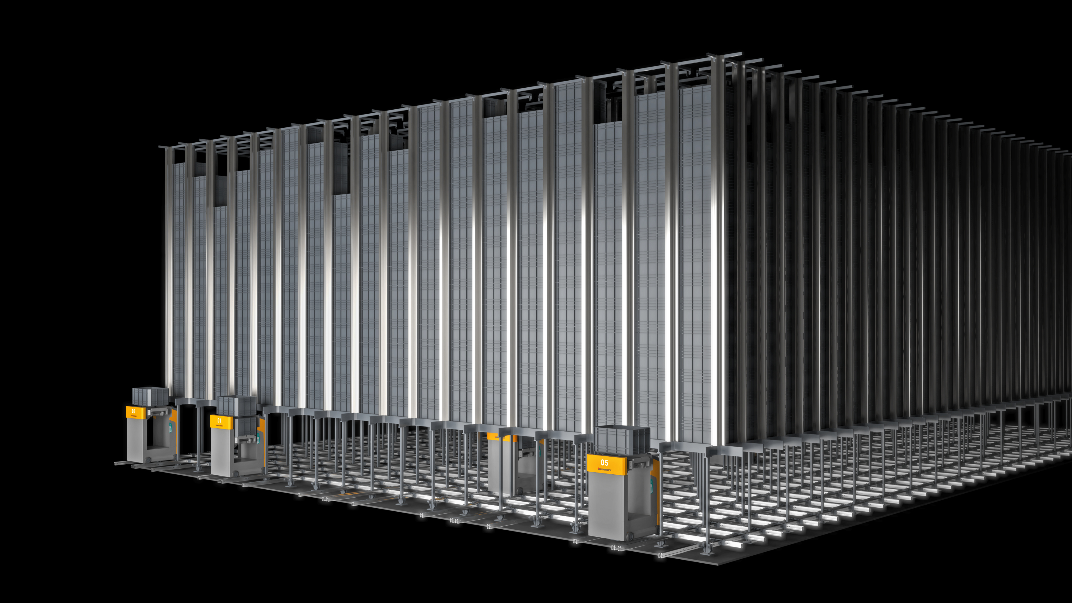PowerCube es un sistema de almacenamiento compacto automatizado para contenedores que proporciona almacenamiento y preparación de pedidos particularmente compactos para piezas pequeñas y carga general. Los contenedores se apilan unos encima de otros en canales verticales de hasta 12 m de altura dentro del sistema de estanterías modulares de PowerCube. Esta altura del sistema permite un almacenamiento de contenedores especialmente eficiente en el espacio en el área más pequeña posible. Los contenedores se almacenan y recuperan mediante lanzaderas PowerCube especialmente desarrolladas que se mueven automáticamente debajo del sistema de estanterías. Gracias a este principio, PowerCube ofrece la ventaja decisiva sobre otros sistemas de almacenamiento compactos, ya que el almacén se puede construir hacia arriba de manera flexible y también se puede adaptar a formas de techo individuales.